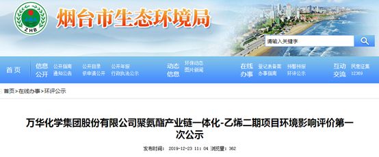 萬(wàn)華煙臺(tái)聚氨酯項(xiàng)目環(huán)評(píng)公示