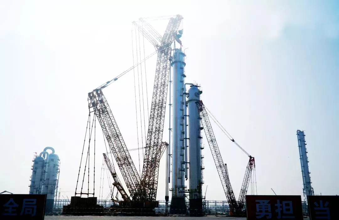 ????????目前,乙烯裝置急冷水塔、急冷油塔、乙烯塔、1#丙烯塔和2#丙烯塔5個(gè)超千噸級(jí)大型設(shè)備陸續(xù)順利吊裝就位,標(biāo)志著項(xiàng)目乙烯裝置建設(shè)取得階段性勝利,設(shè)備安裝工作將迎來(lái)新一輪高峰。