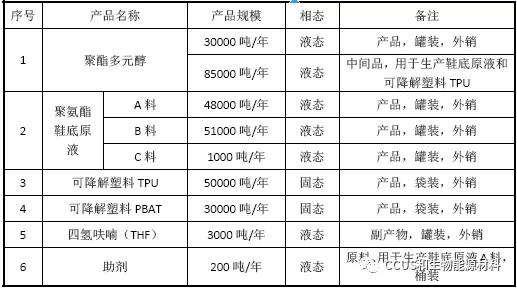 ????????建設(shè)規(guī)模:年產(chǎn)10 萬噸鞋底原液、3 萬噸聚酯多元醇、8 萬噸可降解塑料(5萬噸/年TPU、3萬噸/年P(guān)BAT)