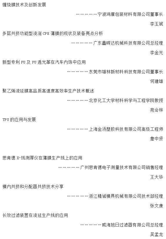 ????????6、 為流延薄膜配套的國內(nèi)外設備、備品備件和原輔材料生產(chǎn)等企業(yè)和機構(gòu)的負責人;