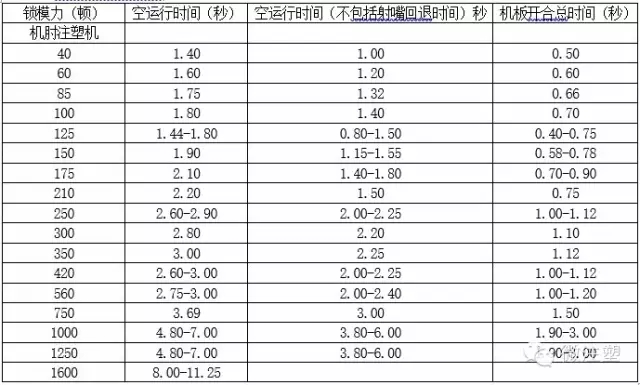 ????????注塑周期注塑周期是指注塑機(jī)完成特定的一整套動作所需的時間。因此,每個部分的動作時間都可能影響到整個周期時間,要達(dá)到縮短周期時間,提高生產(chǎn)效率的目的,應(yīng)分別考慮動作的每個部分以便辨別可能縮短時間的部分,這樣對每個部分常常可節(jié)省一點點時間。雖然這種節(jié)省可能很少,但當(dāng)這些時間加在一起時,從總體縮短的百分比來看,縮短的時間十分顯著。注塑機(jī)的空運行時間空運行時間是注塑機(jī)空操作時完成一個完整周期所需的時間,即沒有任何塑料在注塑機(jī)里面。不管該注塑機(jī)的大小和類型如何,當(dāng)你試圖更改運作時應(yīng)先了解注塑機(jī)的空運作,因為它有助于注塑者確定某特定的注塑機(jī)是否有能力在高產(chǎn)量下生產(chǎn)或保持該產(chǎn)量。所以在試圖減少運作時間之前,從注塑要販狀態(tài)、年期和空運轉(zhuǎn)時間方面來考慮是否能減少運作時間。