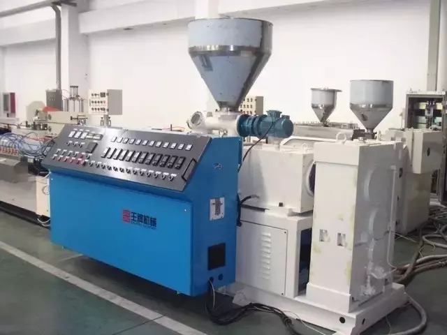 ????????機(jī)器使用年限長,螺桿和機(jī)筒磨損,縫隙增大,回流增加,機(jī)筒壁粘附的炭化物增加,隨擠出時間延長,炭化物逐步被帶出到料條,在牽引力作用下,造成斷條;