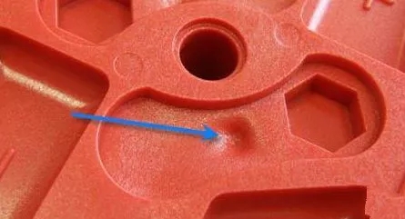 ????????在產品生產過程中,產品凹痕和氣孔是不良現(xiàn)象中發(fā)生頻率最高的,注入模具的塑料在冷卻時發(fā)生體積收縮,早冷卻部分即表面首先硬化,內部就會產生氣泡;