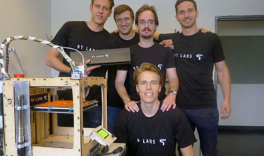 圖為9T實驗室團隊的成員,從左至右依次為Giovanni Cavolina,,F(xiàn)ilippo Kusch,Sel?uk Ercan和Martin Eichenhofer, 最前方靠近3的打印機的為Chester Houwink。圖片來源:9T實驗室