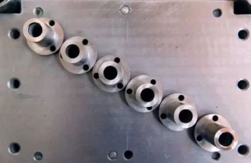 ????????④冷卻水孔的檢修。冷卻水孔內(nèi)很容易結(jié)水垢,阻礙傳熱,嚴(yán)重時(shí)使水路不通,需要定期檢修。對于直線水孔,可插入比冷卻水孔直徑小0.5mm的鋼棍,用錘子敲擊,去除水垢和鐵銹。對于埋入模具內(nèi)的冷卻水管,應(yīng)分解模具,去除鐵銹。