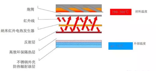????????與上面三種傳統(tǒng)加熱方式相比,紅外線加熱是近年來(lái)發(fā)展起來(lái)的一項(xiàng)新的加熱技術(shù)。加熱原理如圖4。