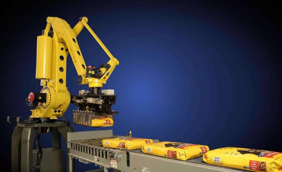 ????????成品袋輸送,整理,機(jī)械手碼垛。
